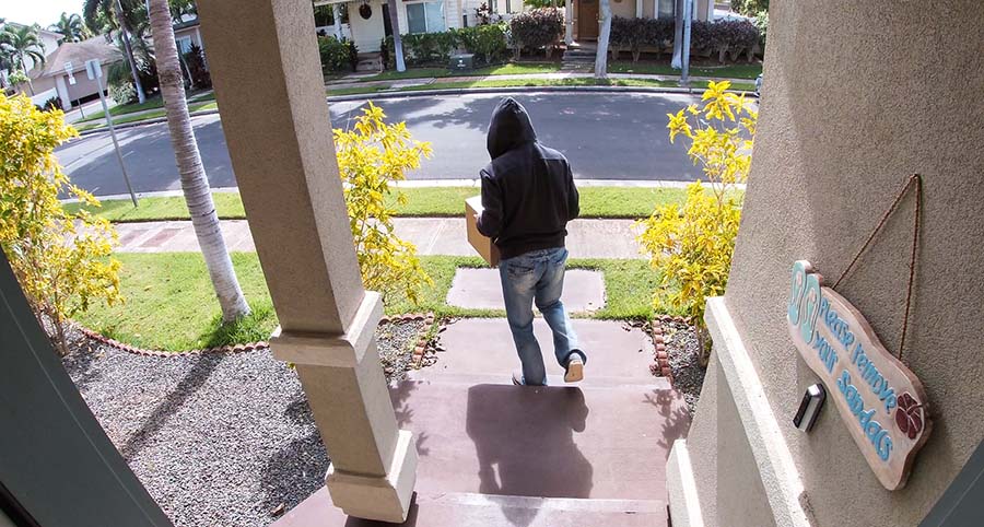 - All-encompassing camera view: You need to see the complete picture, and that consists of the faces of visitors at your entry and boxes on the walkway below. Cameras with ultra-wide 180-degree field of vision provide a total perspective.